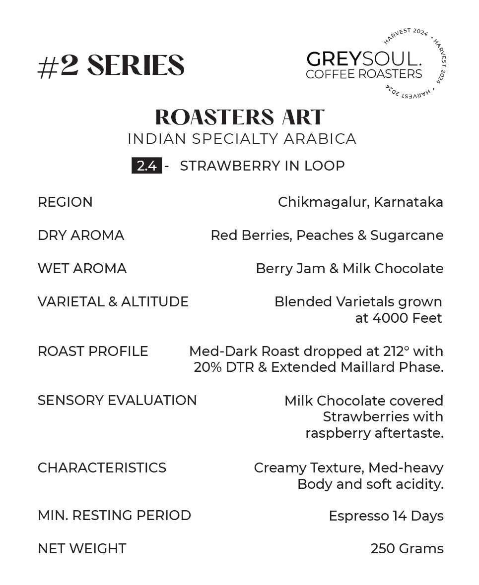 After Mango in Loop we as roasters are creating a similar and complex blend of arabica called Strawberry in Loop. This blend releases an aroma of red ripe berries immediately post grinding it. It can be enjoyed both with and without milk especially a cortado. As roasters the creation of this blend took us over 3 months, after several roasting profiles & blending lots different ways to eventually do over a dozen espresso trials. Expect an invigorating aroma, sweet rich espresso and a final cup full of red berry sweetness.